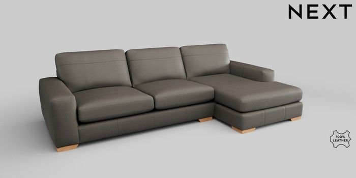 6.12.1 Buy Houghton Leather Deep Sit Large Sofa Chaise - Right Hand Turin Leather French Grey Large Square Angle - Light from the Next UK online shop Click here to use our accessible website