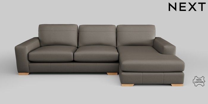 7.2.5 Buy Houghton Leather Deep Sit Large Sofa Chaise - Right Hand Turin Leather French Grey Large Square Angle - Light from the Next UK online shop Click here to use our accessible website
