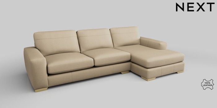 6.12.1 Buy Houghton Leather Deep Sit Large Sofa Chaise - Right Hand Turin Leather Light Natural Large Square Angle - Brushed Brass from the Next UK online shop Click here to use our accessible website