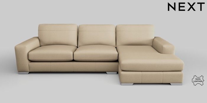 7.0.3 Buy Houghton Leather Deep Sit Large Sofa Chaise - Right Hand Turin Leather Light Natural Large Square Angle - Chrome Metal from the Next UK online shop Click here to use our accessible website