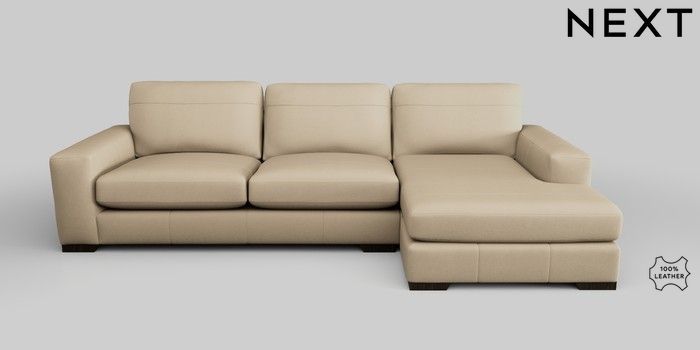 7.0.3 Buy Houghton Leather Deep Sit Large Sofa Chaise - Right Hand Turin Leather Light Natural Large Square Angle - Dark from the Next UK online shop Click here to use our accessible website