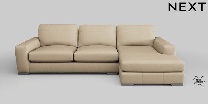 7.0.3 Buy Houghton Leather Deep Sit Large Sofa Chaise - Right Hand Turin Leather Light Natural Large Square Angle - Gunmetal from the Next UK online shop Click here to use our accessible website