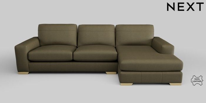 6.12.1 Buy Houghton Leather Deep Sit Large Sofa Chaise - Right Hand Turin Leather Moss Green Large Square Angle - Brushed Brass from the Next UK online shop Click here to use our accessible website