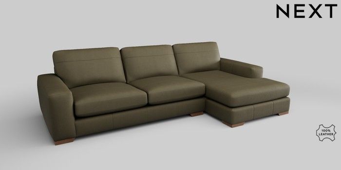 6.12.1 Buy Houghton Leather Deep Sit Large Sofa Chaise - Right Hand Turin Leather Moss Green Large Square Angle - Mid from the Next UK online shop Click here to use our accessible website
