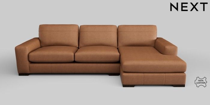 7.2.5 Buy Houghton Leather Deep Sit Large Sofa Chaise - Right Hand Turin Leather Tan Brown Large Square Angle - Dark from the Next UK online shop Click here to use our accessible website