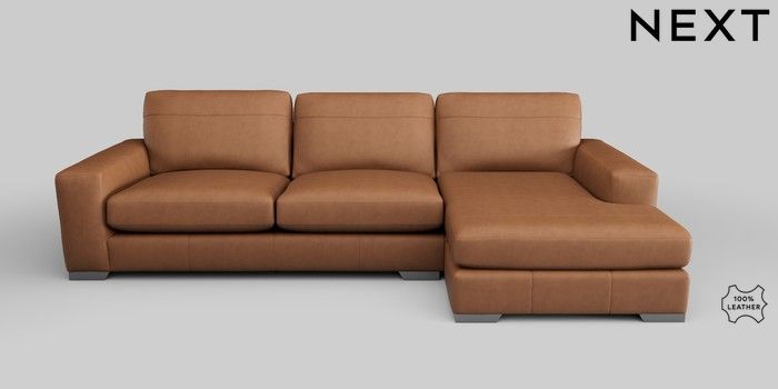 6.12.1 Buy Houghton Leather Deep Sit Large Sofa Chaise - Right Hand Turin Leather Tan Brown Large Square Angle - Gunmetal from the Next UK online shop Click here to use our accessible website