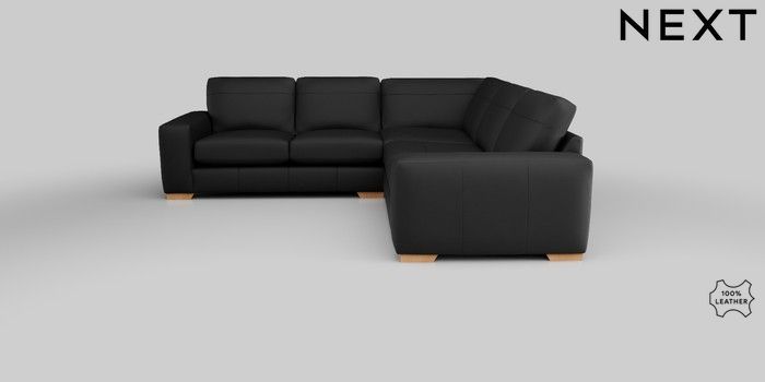 6.12.1 Buy Houghton Leather Deep Sit Medium Corner Sofa - Universal Columbia Black Large Square Angle - Light from the Next UK online shop Click here to use our accessible website