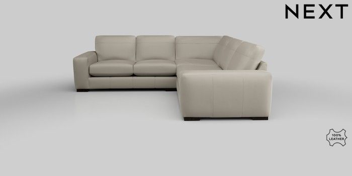 6.12.1 Buy Houghton Leather Deep Sit Medium Corner Sofa - Universal Columbia Silver Grey Large Square Angle - Dark from the Next UK online shop Click here to use our accessible website