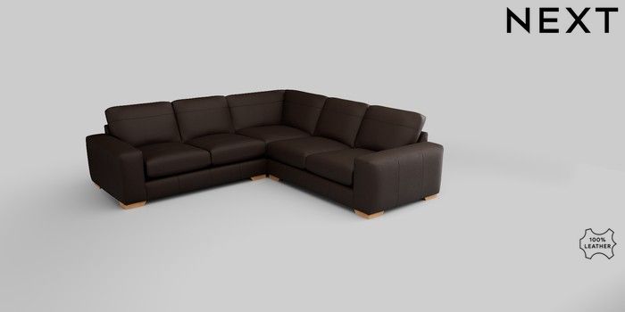6.12.1 Buy Houghton Leather Deep Sit Medium Corner Sofa - Universal Turin Leather Dark Brown Large Square Angle - Light from the Next UK online shop Click here to use our accessible website