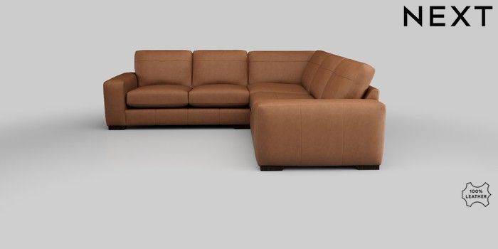 6.12.1 Buy Houghton Leather Deep Sit Medium Corner Sofa - Universal Turin Leather Tan Brown Large Square Angle - Dark from the Next UK online shop Click here to use our accessible website