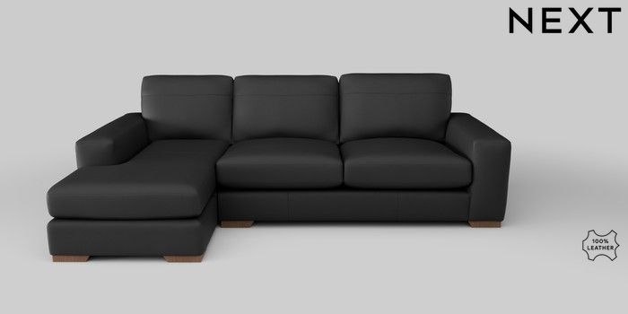 6.12.1 Buy Houghton Leather Deep Sit Medium Sofa Chaise - Left Hand Columbia Black Large Square Angle - Mid from the Next UK online shop Click here to use our accessible website