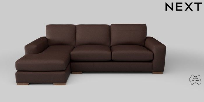 7.0.3 Buy Houghton Leather Deep Sit Medium Sofa Chaise - Left Hand Rustic Leather Dark Brown Large Square Angle - Mid from the Next UK online shop Click here to use our accessible website