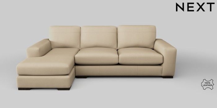 7.0.3 Buy Houghton Leather Deep Sit Medium Sofa Chaise - Left Hand Turin Leather Light Natural Large Square Angle - Dark from the Next UK online shop Click here to use our accessible website