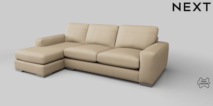 6.12.1 Buy Houghton Leather Deep Sit Medium Sofa Chaise - Left Hand Turin Leather Light Natural Large Square Angle - Gunmetal from the Next UK online shop Click here to use our accessible website