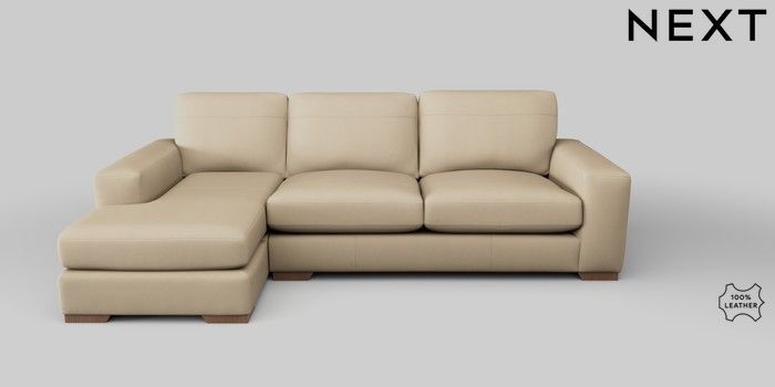 7.0.3 Buy Houghton Leather Deep Sit Medium Sofa Chaise - Left Hand Turin Leather Light Natural Large Square Angle - Mid from the Next UK online shop Click here to use our accessible website