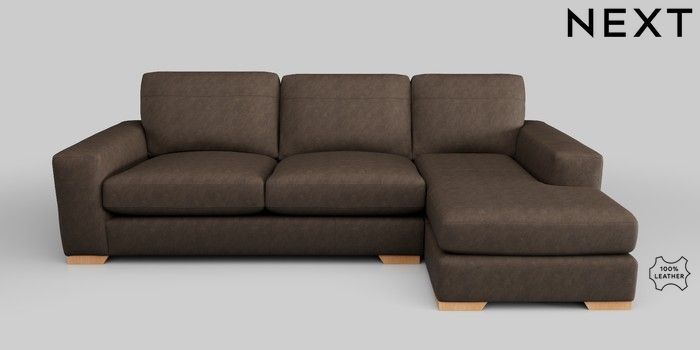 6.12.1 Buy Houghton Leather Deep Sit Medium Sofa Chaise - Right Hand Antiqued Leather Dark Brown Large Square Angle - Light from the Next UK online shop Click here to use our accessible website