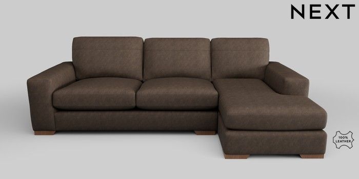 6.12.1 Buy Houghton Leather Deep Sit Medium Sofa Chaise - Right Hand Antiqued Leather Dark Brown Large Square Angle - Mid from the Next UK online shop Click here to use our accessible website