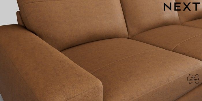 6.12.1 Buy Houghton Leather Deep Sit Medium Sofa Chaise - Right Hand Antiqued Leather Light Tan Brown Large Square Angle - Dark from the Next UK online shop Click here to use our accessible website