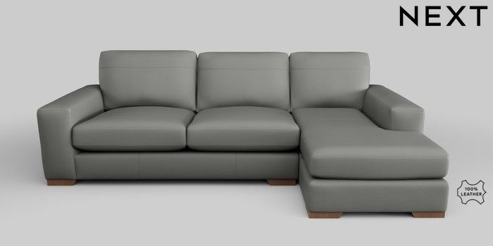 6.12.1 Buy Houghton Leather Deep Sit Medium Sofa Chaise - Right Hand Columbia French Grey Large Square Angle - Mid from the Next UK online shop Click here to use our accessible website