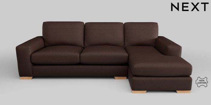 7.0.3 Buy Houghton Leather Deep Sit Medium Sofa Chaise - Right Hand Rustic Leather Dark Brown Large Square Angle - Light from the Next UK online shop Click here to use our accessible website