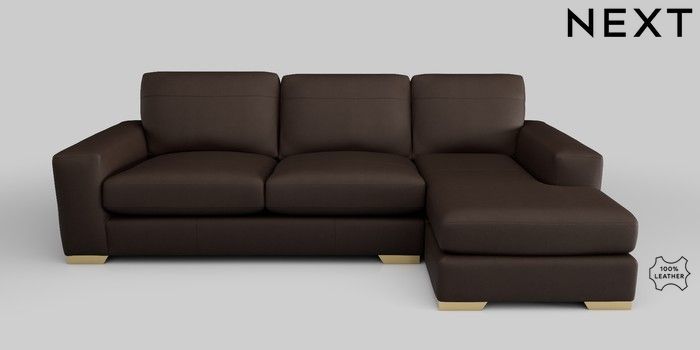 7.0.3 Buy Houghton Leather Deep Sit Medium Sofa Chaise - Right Hand Turin Leather Dark Brown Large Square Angle - Brushed Brass from the Next UK online shop Click here to use our accessible website