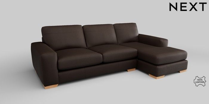 6.12.1 Buy Houghton Leather Deep Sit Medium Sofa Chaise - Right Hand Turin Leather Dark Brown Large Square Angle - Light from the Next UK online shop Click here to use our accessible website
