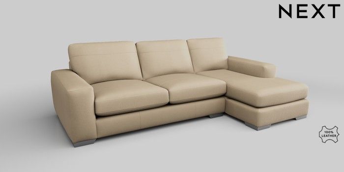 6.12.1 Buy Houghton Leather Deep Sit Medium Sofa Chaise - Right Hand Turin Leather Light Natural Large Square Angle - Gunmetal from the Next UK online shop Click here to use our accessible website