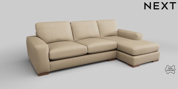 6.12.1 Buy Houghton Leather Deep Sit Medium Sofa Chaise - Right Hand Turin Leather Light Natural Large Square Angle - Mid from the Next UK online shop Click here to use our accessible website