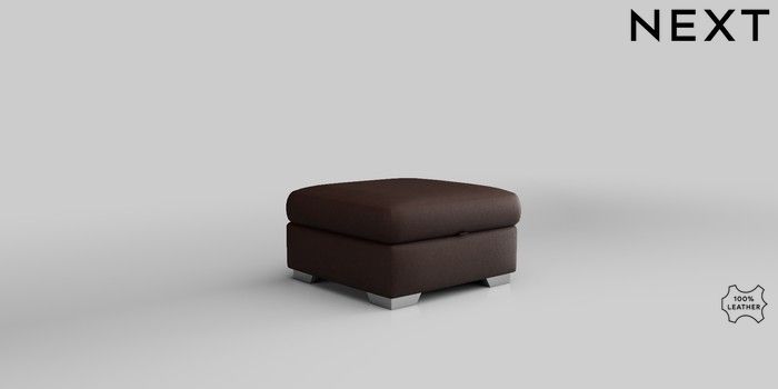 6.12.1 Buy Houghton Leather Deep Sit Storage Footstool Rustic Leather Dark Brown Square Angle - Chrome Metal from the Next UK online shop Click here to use our accessible website