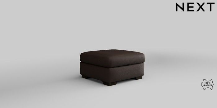 6.12.1 Buy Houghton Leather Deep Sit Storage Footstool Turin Leather Dark Brown Square Angle - Dark from the Next UK online shop Click here to use our accessible website