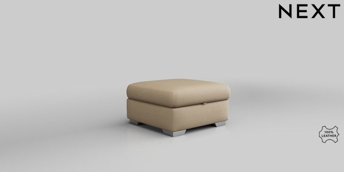 6.12.1 Buy Houghton Leather Deep Sit Storage Footstool Turin Leather Light Natural Square Angle - Chrome Metal from the Next UK online shop Click here to use our accessible website