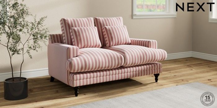 7.0.3 Buy Hutton Deep Relaxed Sit 2 Seater Sofa Bold Chenille Stripe Dark Pink Country Turned - Dark from the Next UK online shop Click here to use our accessible website