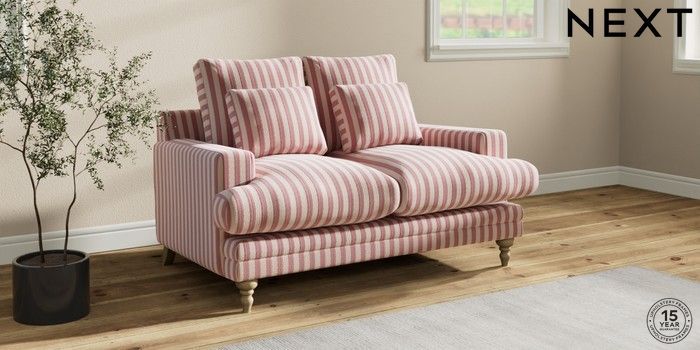 7.0.3 Buy Hutton Deep Relaxed Sit 2 Seater Sofa Bold Chenille Stripe Dark Pink Country Turned - Light from the Next UK online shop Click here to use our accessible website