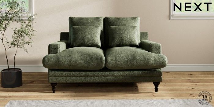 6.12.1 Buy Hutton Deep Relaxed Sit 2 Seater Sofa Boucle Chenille Dark Moss Green Country Turned - Dark from the Next UK online shop Click here to use our accessible website