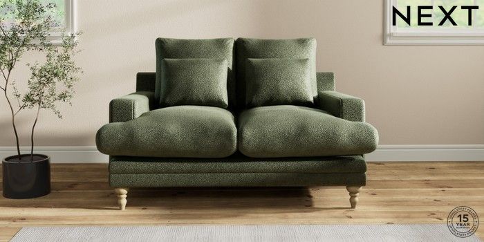 6.12.1 Buy Hutton Deep Relaxed Sit 2 Seater Sofa Boucle Chenille Dark Moss Green Country Turned - Light from the Next UK online shop Click here to use our accessible website