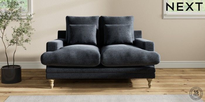 6.12.1 Buy Hutton Deep Relaxed Sit 2 Seater Sofa Boucle Chenille Dark Slate Blue Country Turned - Light from the Next UK online shop Click here to use our accessible website