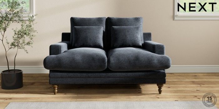 6.12.1 Buy Hutton Deep Relaxed Sit 2 Seater Sofa Boucle Chenille Dark Slate Blue Country Turned - Mid from the Next UK online shop Click here to use our accessible website