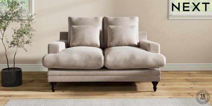 6.12.1 Buy Hutton Deep Relaxed Sit 2 Seater Sofa Boucle Chenille Light Natural Country Turned - Dark from the Next UK online shop Click here to use our accessible website