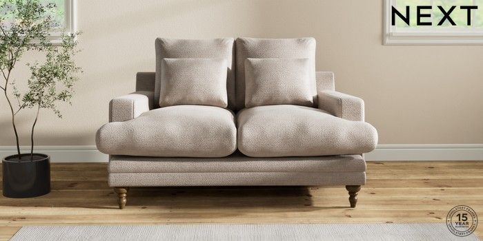 6.12.1 Buy Hutton Deep Relaxed Sit 2 Seater Sofa Boucle Chenille Light Natural Country Turned - Mid from the Next UK online shop Click here to use our accessible website