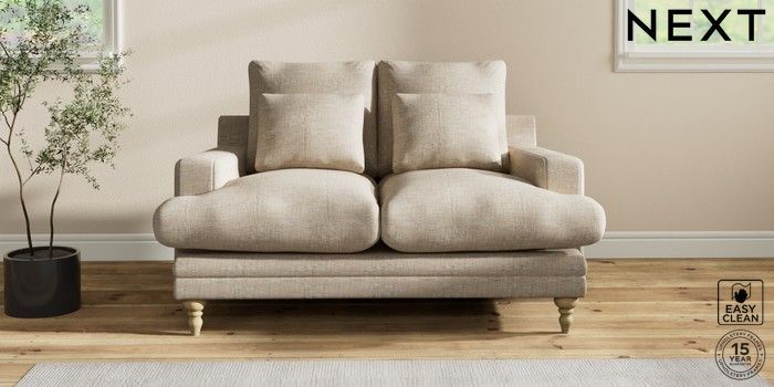 6.12.1 Buy Hutton Deep Relaxed Sit 2 Seater Sofa Boucle Weave Easy Clean Dark Natural Country Turned - Light from the Next UK online shop Click here to use our accessible website
