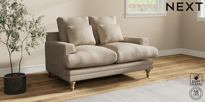 7.0.3 Buy Hutton Deep Relaxed Sit 2 Seater Sofa Boucle Weave Easy Clean Dark Natural Country Turned - Light from the Next UK online shop Click here to use our accessible website
