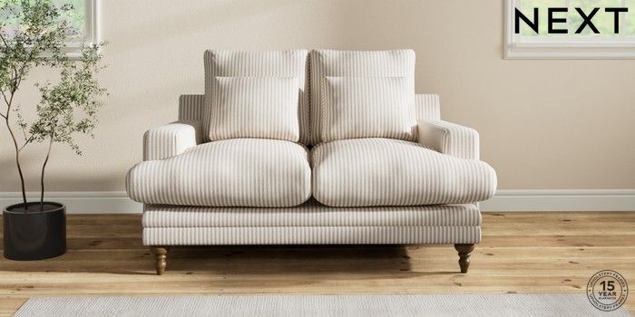 6.12.1 Buy Hutton Deep Relaxed Sit 2 Seater Sofa Chenille Stripe Natural Country Turned - Mid from the Next UK online shop Click here to use our accessible website