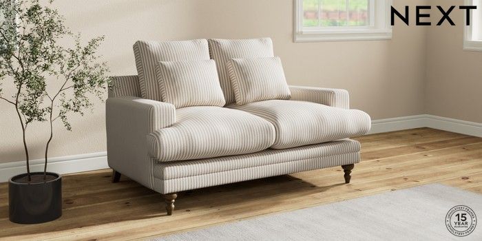 7.0.3 Buy Hutton Deep Relaxed Sit 2 Seater Sofa Chenille Stripe Natural Country Turned - Mid from the Next UK online shop Click here to use our accessible website