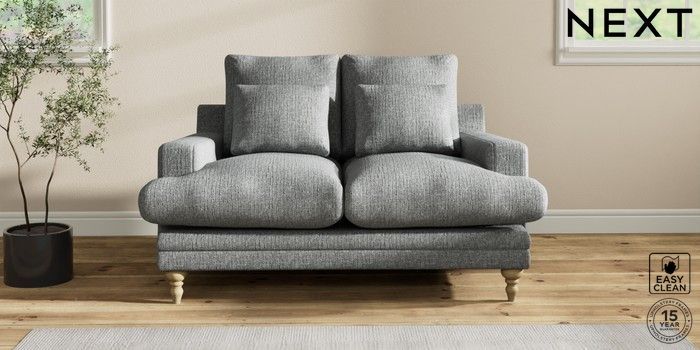 6.12.1 Buy Hutton Deep Relaxed Sit 2 Seater Sofa Chunky Boucle Easy Clean Mid Grey Country Turned - Light from the Next UK online shop Click here to use our accessible website