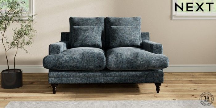 6.12.1 Buy Hutton Deep Relaxed Sit 2 Seater Sofa Chunky Chenille Dark Navy Blue Country Turned - Dark from the Next UK online shop Click here to use our accessible website