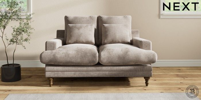 6.12.1 Buy Hutton Deep Relaxed Sit 2 Seater Sofa Chunky Chenille Light Dove Country Turned - Mid from the Next UK online shop Click here to use our accessible website