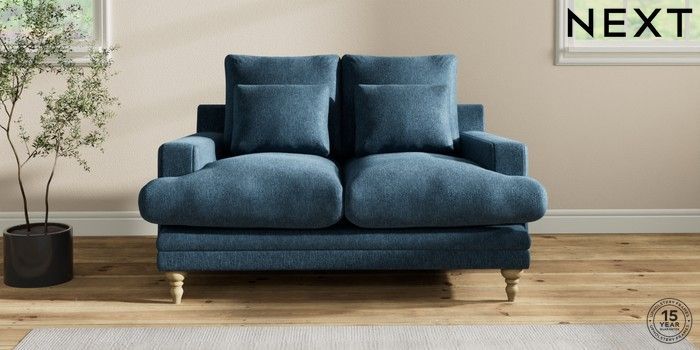 6.12.1 Buy Hutton Deep Relaxed Sit 2 Seater Sofa Cotswold Chenille Dark Blue Country Turned - Light from the Next UK online shop Click here to use our accessible website