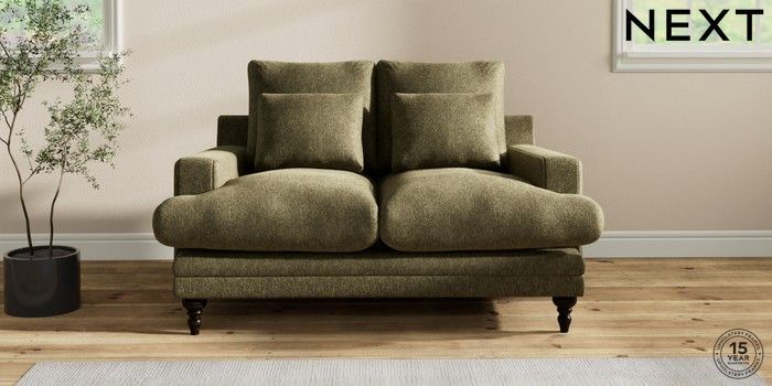6.12.1 Buy Hutton Deep Relaxed Sit 2 Seater Sofa Cotswold Chenille Dark Green Country Turned - Dark from the Next UK online shop Click here to use our accessible website