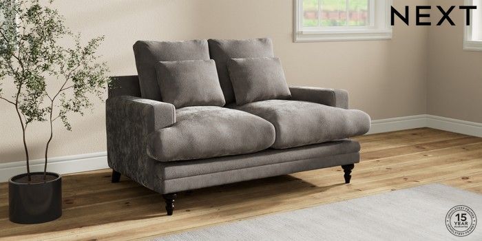 7.0.3 Buy Hutton Deep Relaxed Sit 2 Seater Sofa Distressed Velour French Grey Country Turned - Dark from the Next UK online shop Click here to use our accessible website