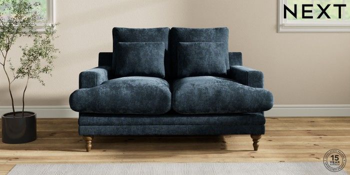 6.12.1 Buy Hutton Deep Relaxed Sit 2 Seater Sofa Distressed Velour Midnight Blue Country Turned - Mid from the Next UK online shop Click here to use our accessible website